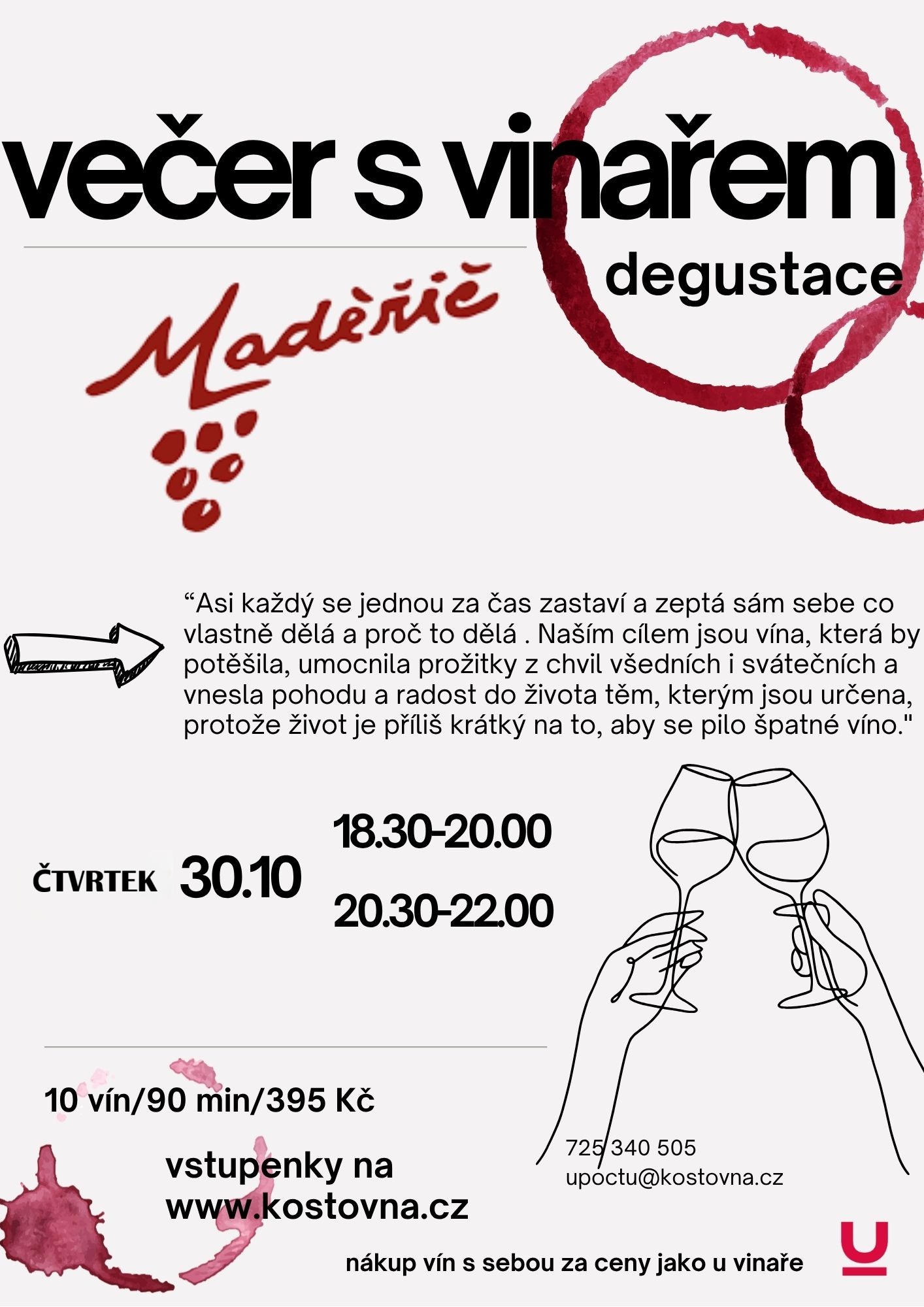 řízená degustace s vinařem JUROU MADĚŘIČEM - 18:30 ; rodinné vinařství z Moravského Žižkova na Velkopavlovicku